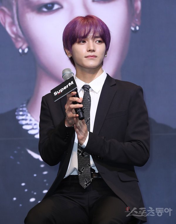슈퍼엠(SuperM)의 태용이 2일 서울 용산 드래곤시티 그랜드볼룸 백두홀에서 열린 월드와이드 론칭 기념 기자간담회에서 인사말을 하고 있다.