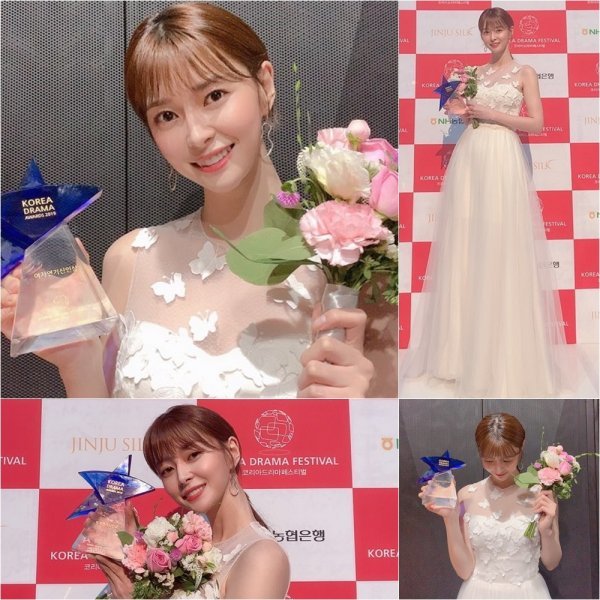 이와 함께 소속사를 통해 공개된 인증 사진에는 수상의 기쁨과 함께 순백의 드레스를 입고 인형 미모를 뽐내고 있어 눈길을 끈다.