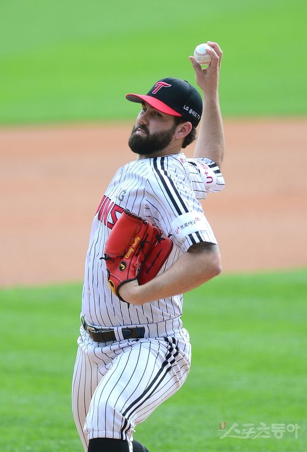 3일 서울 잠실야구장에서 ‘2019 신한은행 MY CAR KBO 포스트시즌’ LG 트윈스와 NC 다이노스의 와일드카드 결정전 1차전이 열렸다. 선발 투수로 등판한 LG 켈리가 역투하고 있다.
