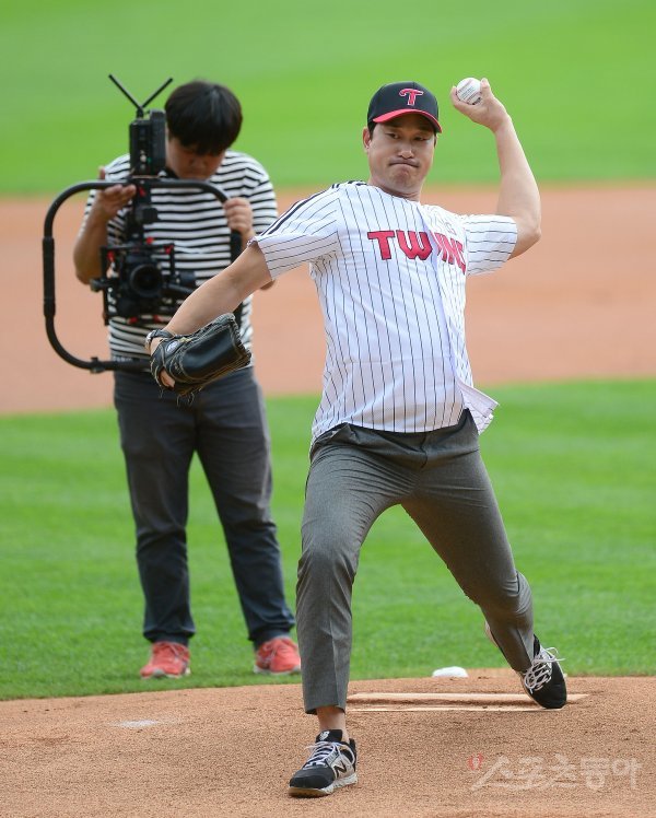 3일 서울 잠실야구장에서 ‘2019 신한은행 MY CAR KBO 포스트시즌’ LG 트윈스와 NC 다이노스의 와일드카드 결정전 1차전이 열렸다. 경기 전 봉중근 해설위원이 시구를 하고 있다.