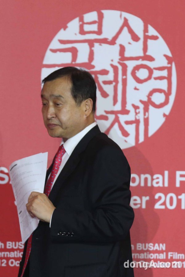 전양준 집행위원장이 3일 오후 부산 해운대구 영화의전당 중극장에서 열린 부산국제영화제 개막작 \'말도둑들, 시간의 길\'의 기자회견장에 참석하고 있다.