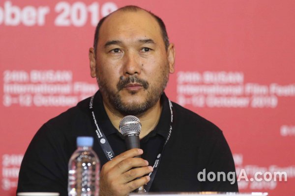 예를란 누르무함베토프 감독이 3일 오후 부산 해운대구 영화의전당 중극장에서 열린 부산국제영화제 개막작 \'말도둑들, 시간의 길\'의 기자회견에 인사말을 하고 있다.