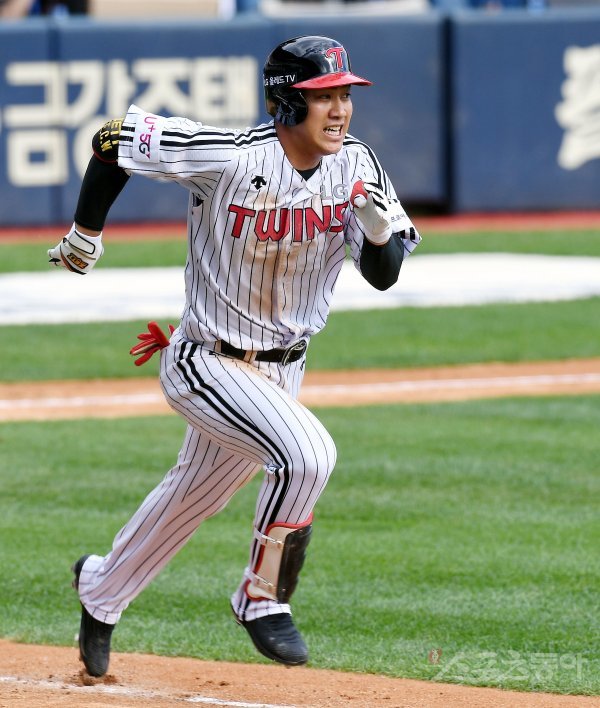 3일 서울 잠실야구장에서 ‘2019 신한은행 MY CAR KBO리그’ LG 트윈스와 NC 다이노스의 와일드카드 1차전 경기가 열렸다. 4회말 무사 1루에서 LG 이천웅이 안타를 날린 뒤 1루로 달리고 있다.