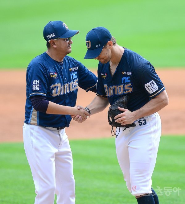 3일 서울 잠실야구장에서 ‘2019 신한은행 MY CAR KBO 포스트시즌’ LG 트윈스와 NC 다이노스의 와일드카드 결정전 1차전이 열렸다. 선발 투수로 등판한 NC 프리드릭이 4회말 무사 1,3루 상황에서 교체되고 있다.
