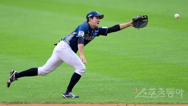 3일 서울 잠실야구장에서 ‘2019 신한은행 MY CAR KBO 포스트시즌’ LG 트윈스와 NC 다이노스의 와일드카드 결정전 1차전이 열렸다. 2회말 2사 1루 NC 박민우가 LG 이천웅의 타구를 다이빙캐치 시도했으나 놓치고 있다.