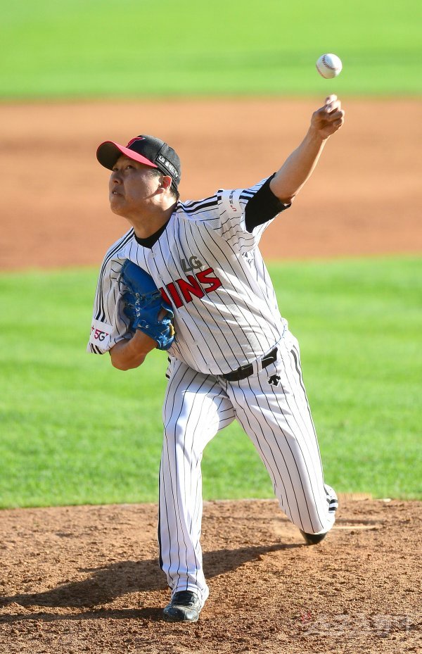 3일 서울 잠실야구장에서 ‘2019 신한은행 MY CAR KBO 포스트시즌’ LG 트윈스와 NC 다이노스의 와일드카드 결정전 1차전이 열렸다. 8회초 교체 등판한 LG 차우찬이 역투하고 있다.