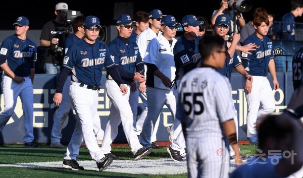 3일 서울 잠실야구장에서 ‘2019 신한은행 MY CAR KBO리그’ LG 트윈스와 NC 다이노스의 와일드카드 1차전 경기가 열렸다. LG에 1-3으로 패한 NC 이동욱 감독이 그라운드를 걸으며 아쉬워하고 있다.