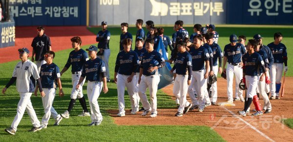 3일 서울 잠실야구장에서 ‘2019 신한은행 MY CAR KBO 포스트시즌’ LG 트윈스와 NC 다이노스의 와일드카드 결정전 1차전이 열렸다. 1-3으로 패한 NC 선수들이 경기장을 빠져나가고 있다.