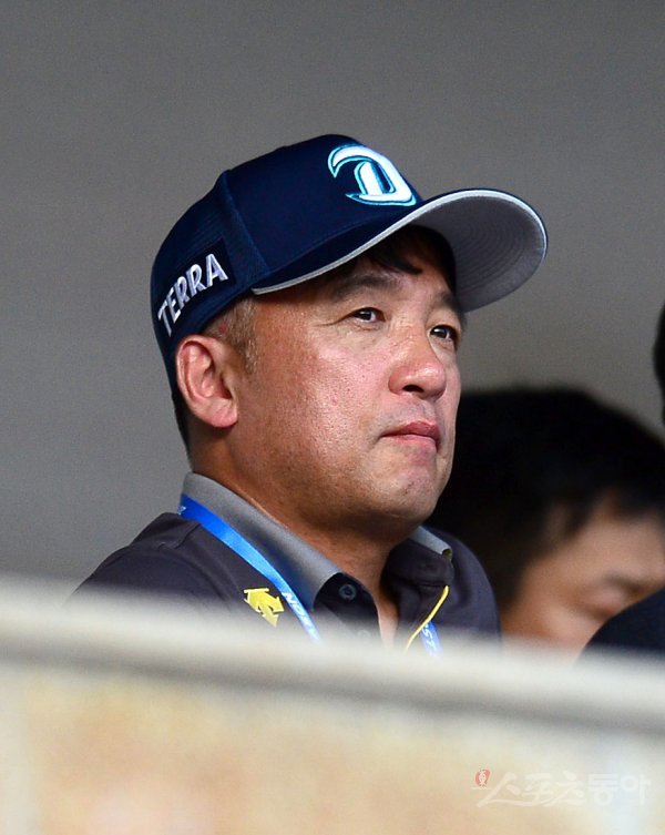 3일 서울 잠실야구장에서 ‘2019 신한은행 MY CAR KBO 포스트시즌’ LG 트윈스와 NC 다이노스의 와일드카드 결정전 1차전이 열렸다. 김택진 NC 다이노스 구단주가 경기를 관전하고 있다.