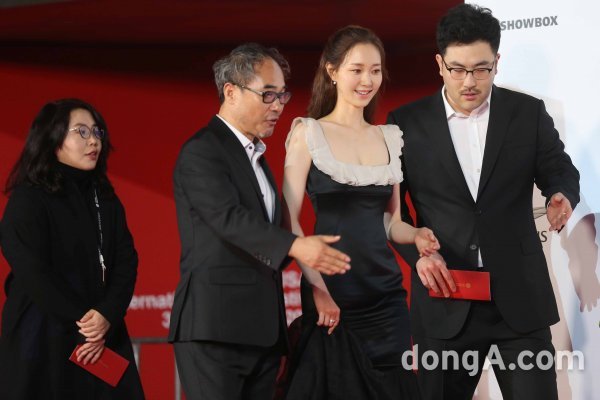 배우 강신일, 이유영, 감독 박제범이 3일 오후 부산 해운대구 영화의 전당에서 열린 제24회 부산국제영화제 개막식 레드카펫 행사에 참석하고 있다.