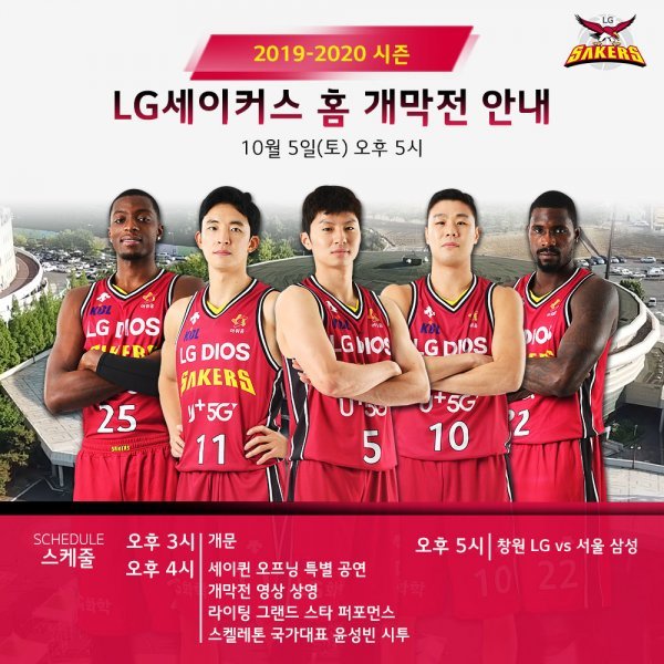 창원 LG 세이커스는 5일 오후 5시 창원실내체육관에서 서울 삼성과 ‘2019~2020 현대모비스 프로농구’ 정규경기 홈 개막전을 갖는다.