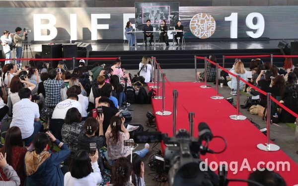 4일 오후 부산 해운대구 영화의전당에서 열린 제24회 부산국제영화제 오픈 토크에서 출연진이 인사말을 하고 있다.동아닷컴 국경원 기자 onecut@donga.com