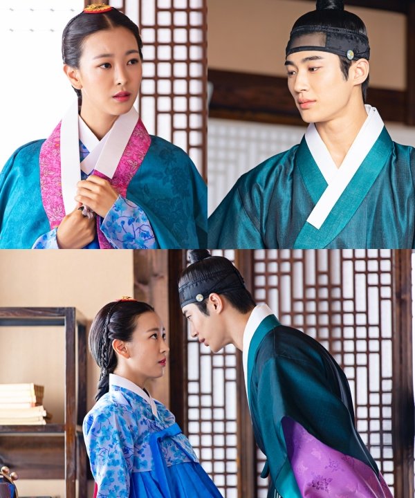 지화는 도준의 능청스러운 행동들에 “보나 마나 기방 기둥서방이나 하는 양반이겠지”라고 생각하면서도, 댕기를 맨 개똥(공승연)을 보고 자신도 모르게 불쾌함을 느꼈다. 도준이 아닌 마훈(김민재)이 구입한 것이라는 사실을 짐작도 하지 못했기 때문. 그렇게 스쳐 지나가는 인연이라 생각했던 도준과 지화가 다시 마주친 곳은 기방이었다. 중전 간택 단자를 넣게 된 지화가 왕 이수(서지훈)에 대해 알아보기 위해 직접 정보꾼을 찾아갔다가 도준을 만난 것. 지화는 이번에도 “대체 이 고운 얼굴을 왜 감추고 다니시오”라는 도준의 말에 어찌할 바를 몰랐다. 나랏님의 뒷조사를 해달라고 요청하던 당돌함과는 정반대의 모습이었다.