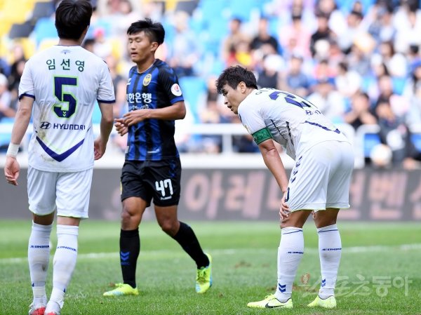 6일 인천 축구전용경기장에서 열린 ‘하나원큐 K리그1 2019’ 인천 유나이티드와 전북 현대의 경기에서 전북 이동국이 헤딩슛이 골대를 맞고 나오자 아쉬워하고 있다.