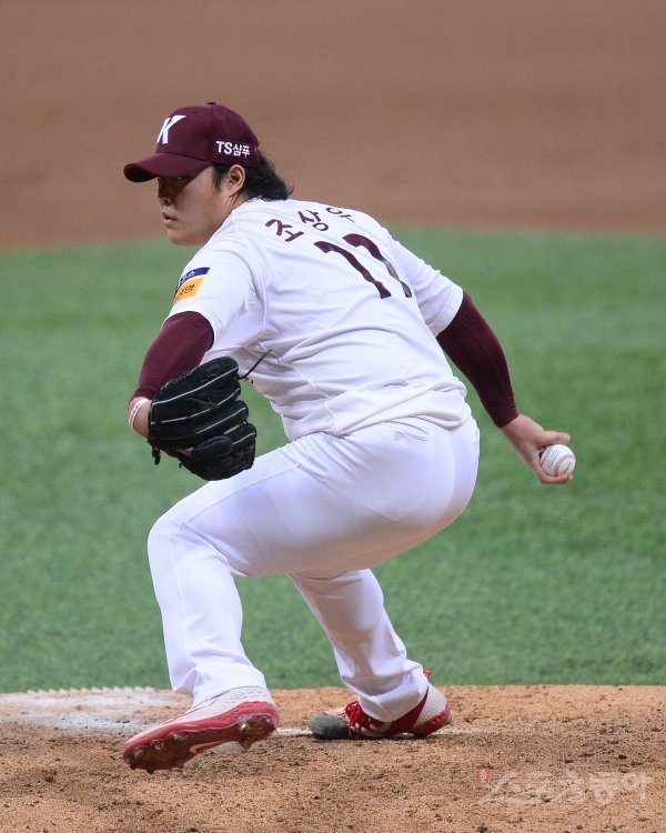 7회초 교체 등판한 키움 조상우가 역투하고 있다.