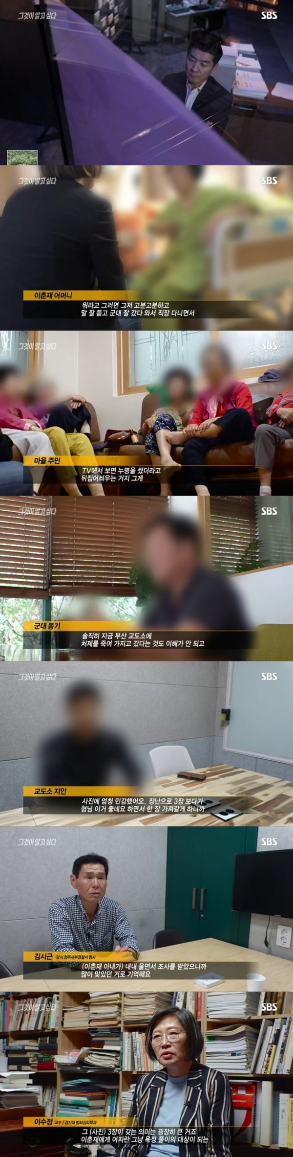 이춘재 주변 사람들은 ‘착했다’, ‘사람 좋았다’라고 진술했으며, 교도소 지인 또한 ‘순박한 동네 아저씨 이미지’라고 그를 설명했다. 이춘재 어머니와 인터뷰도 공개되었다. ‘처가 가출해서 홧김에 그랬을 것이다.’라고 말해 시청자들의 분노를 샀다.