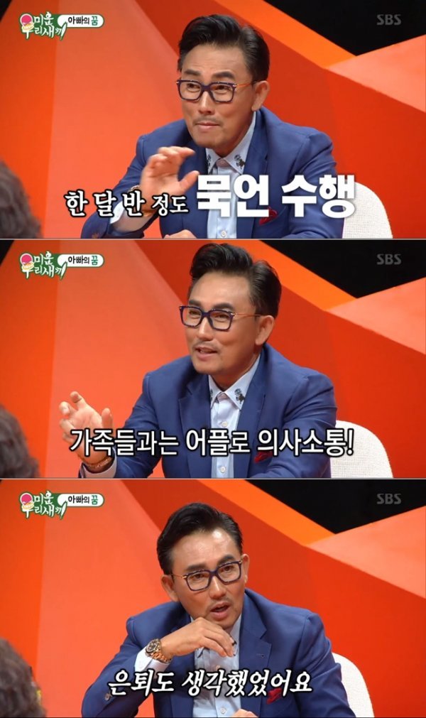 이승철은 6일 밤 방송된 SBS ‘미운우리새끼’(이하 ‘미우새’)에서 “목에 물혹이 생겨서 수술했는데 한 달 반 정도 묵언 수행했다”고 고백했다. 그는 “아예 한 마디도 안 했다. 가족들과도 어플로 대화했다. 묵언수행하면서 미치는 줄 알았다”고 털어놨다.