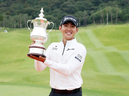 이수민이 6일 경남 김해 정산 컨트리클럽에서 끝난 KPGA 코리안 투어 현대해상 최경주 인비테이셔널에서 우승을 차지한 뒤 트로피를 들고 활짝 웃고 있다. 3년 전 유럽 진출 후 쓴맛을 봤던 이수민은 이번 우승으로 왕자의 귀환을 알렸다. 사진제공|KPGA