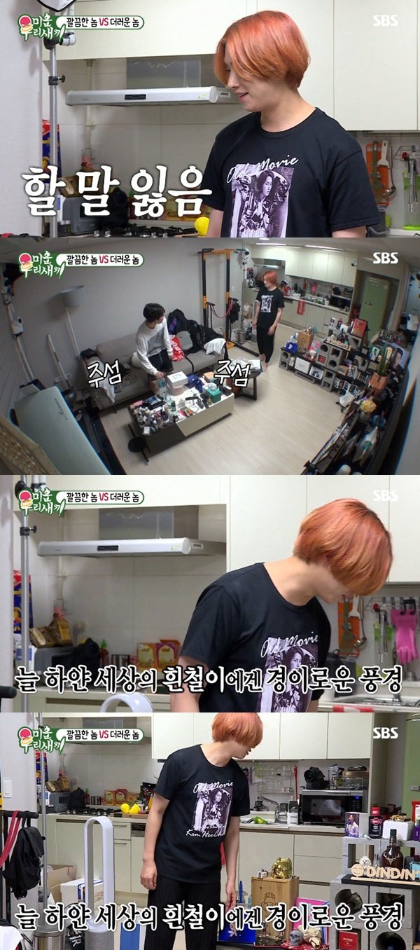 지난 6일 오후 방송된 SBS '미운우리새끼'(이하 미우새)에서는 더러운 남자 딘딘의 집을 방문한 깔끔남 김희철 모습이 그려졌다.