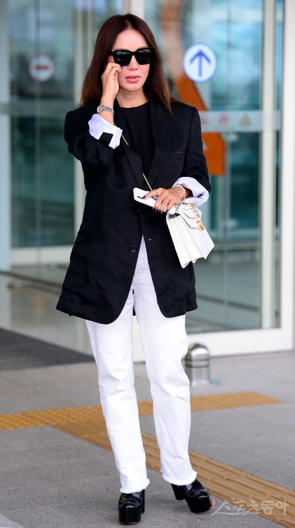 가수 엄정화가 7일 인천국제공항을 통해 파리 출국에 앞서 카메라를 향해 포즈를 취하고 있다.