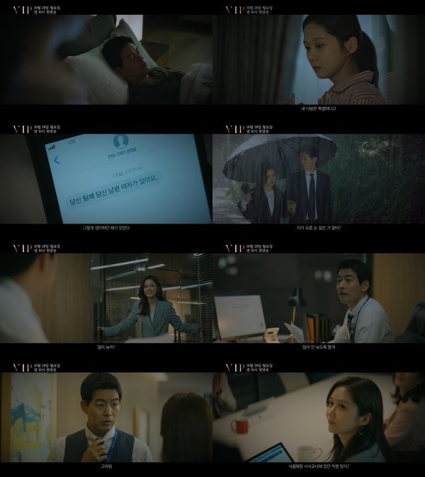 또한, 이들을 둘러싼 세 명의 VIP전담팀 직원들의 비밀들이 이어진다. 먼저 새롭게 VIP전담팀에 발령받은 온유리(표예진 분)는 부사장과 어떤 인연으로 이 곳으로 오게 된 것 인지 궁금해진다. 이어, 워킹맘으로 치열하게 살아가는 송미나(곽선영 분)는 집을 나서며 ‘박성준 팀장’과의 통화 연결을 고민해 호기심을 자극한다. 또한 이현아(이청아 분)는 나정선과 미묘하게 날 선 분위기를 풍겨 긴장감이 고조된다.