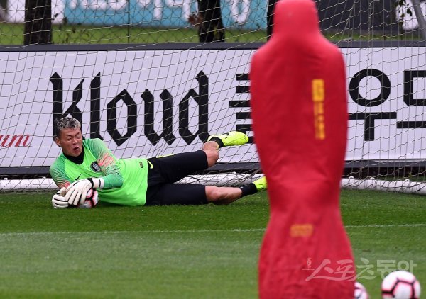 카타르월드컵 아시아 예선경기를 앞두고 한국축구대표팀이 7일 파주 축구국가대표트레이닝센터(NFC)에 소집됐다. 축구대표팀 구성윤이 골키퍼 훈련을 하고 있다.