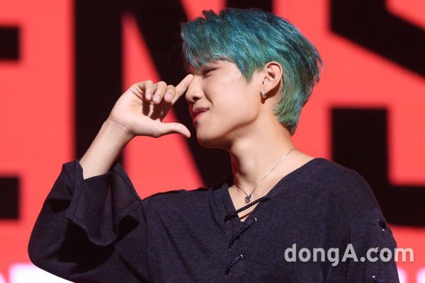 그룹 AB6IX(에이비식스)의 박우진이 7일 오후 서울 동대문구 경희대학교 평화의 전당에서 열린 첫 정규 앨범 ‘6IXENSE(식스센스)’ 발매 쇼케이스에서 새로운 무대를 선보이고 있다.