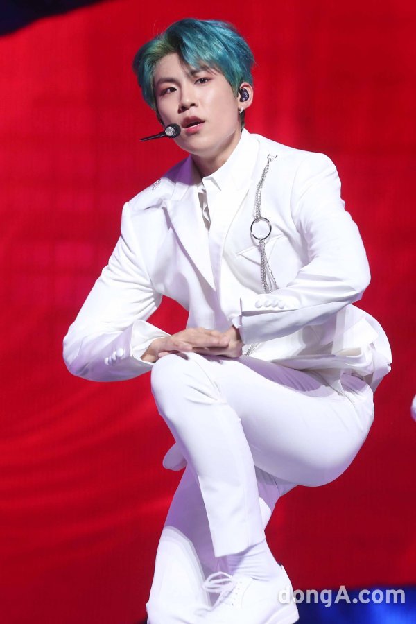 그룹 AB6IX(에이비식스)의 박우진이 7일 오후 서울 동대문구 경희대학교 평화의 전당에서 열린 첫 정규 앨범 ‘6IXENSE(식스센스)’ 발매 쇼케이스에서 새로운 무대를 선보이고 있다.