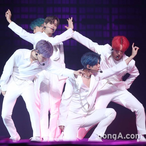 그룹 AB6IX(에이비식스)가 7일 오후 서울 동대문구 경희대학교 평화의 전당에서 열린 첫 정규 앨범 ‘6IXENSE(식스센스)’ 발매 쇼케이스에서 새로운 무대를 선보이고 있다.