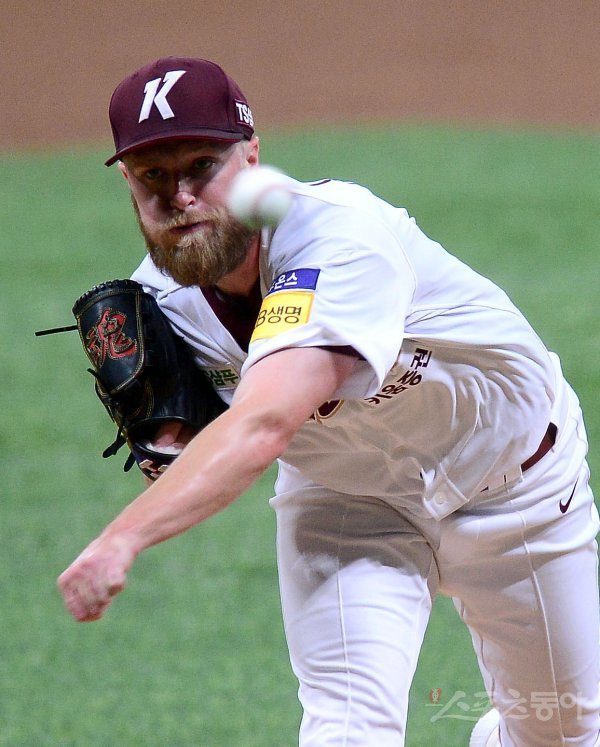 7일 서울 고척스카이돔에서 ‘2019 신한은행 MY CAR KBO 포스트시즌’ LG 트윈스와 키움 히어로즈의 준플레이오프 2차전이 열렸다. 선발 투수로 등판한 키움 요키시가 역투하고 있다.