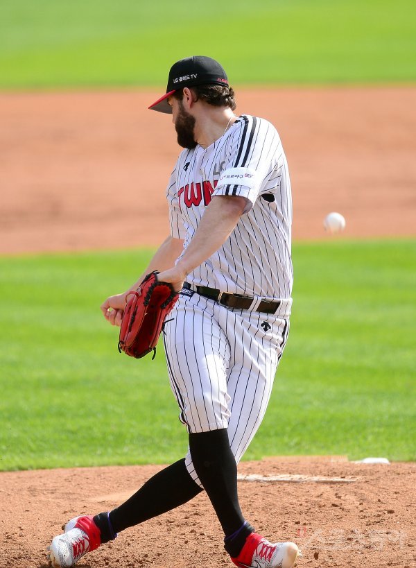 9일 서울 잠실야구장에서 ‘2019 신한은행 MY CAR KBO 포스트시즌’ 키움 히어로즈와 LG 트윈스의 준플레이오프 3차전이 열렸다. 선발 투수로 등판한 LG 켈리가 2회초 2사 1,2루 키움 서건창의 타구를 놓치고 있다.