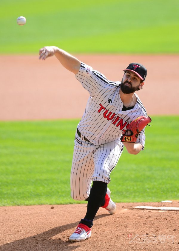9일 서울 잠실야구장에서 ‘2019 신한은행 MY CAR KBO 포스트시즌’ 키움 히어로즈와 LG 트윈스의 준플레이오프 3차전이 열렸다. 선발 투수로 등판한 LG 켈리가 역투하고 있다.