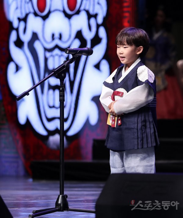 9일 서울 광진구 유니버셜아트센터에서 ‘2019 세종대왕 소헌왕후 선발대회’가 열렸다. 나르샤 부문에 참가한 박노아 군이 인사말을 하고 있다. 김진환 기자 kwangshin00@donga.com