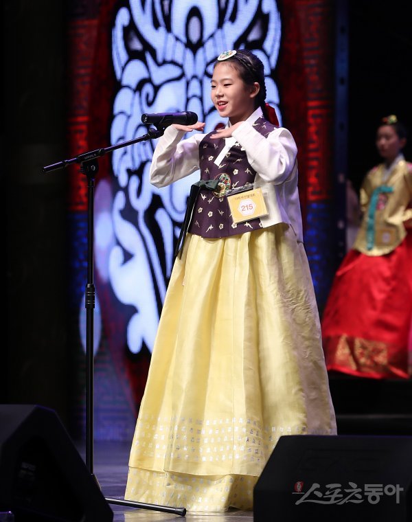 9일 서울 광진구 유니버셜아트센터에서 ‘2019 세종대왕 소헌왕후 선발대회’가 열렸다. 나르샤 부문에 참가한 정선아가 인사말을 하고 있다. 김진환 기자 kwangshin00@donga.com