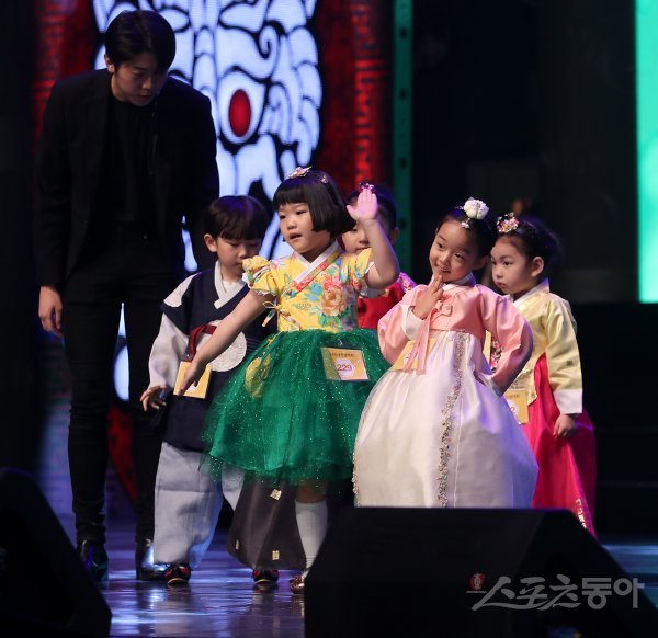 9일 서울 광진구 유니버셜아트센터에서 ‘2019 세종대왕 소헌왕후 선발대회’가 열렸다. 나르샤 부문에 참가한 권라희 양과 채서연 양(오른쪽)이 단체 워킹 퍼포먼스에서 끼를 선보이고 있다. 김진환 기자 kwangshin00@donga.com