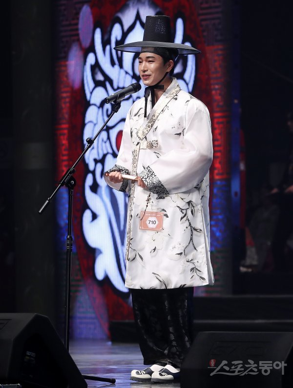 9일 서울 광진구 유니버셜아트센터에서 ‘2019 세종대왕 소헌왕후 선발대회’가 열렸다. 세종대왕 부문에 참가하는 김기찬이 자신을 어필하고 있다. 김진환 기자 kwangshin00@donga.com