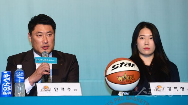 10일 서울 서대문구 그랜드힐튼호텔에서 ‘하나원큐 2019~2020 여자프로농구’ 타이틀스폰서 조인식 및 미디어데이가 열렸다. KB스타즈 안덕수 감독이 출사표를 이야기 하고 있다.