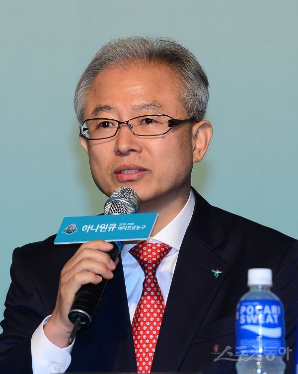 10일 서울 서대문구 그랜드힐튼호텔에서 ‘하나원큐 2019~2020 여자프로농구’ 타이틀스폰서 조인식 및 미디어데이가 열렸다. 정춘식 KEB하나은행 부행장이 인사말을 하고 있다.