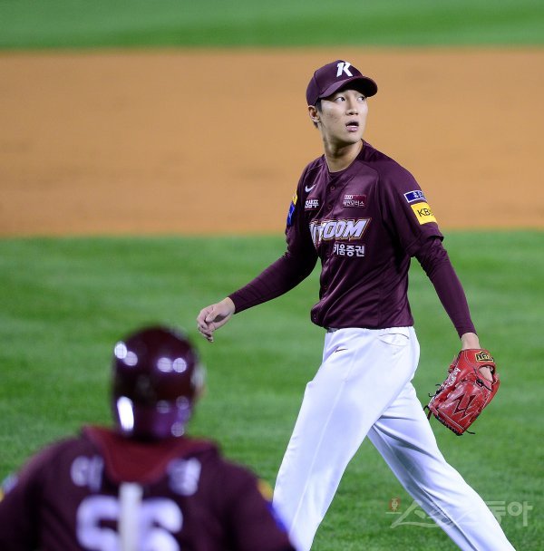 10일 서울 고척스카이돔에서 ‘2019 신한은행 MY CAR KBO 포스트시즌’ 준플레이오프 4차전 키움 히어로즈와 LG 트윈스의 경기가 열렸다. 키움 안우진이 3회말을 삼자 범퇴로 잡아낸 후 덕아웃으로 향하고 있다. 잠실 | 김진환 기자 kwangshin00@donga.com