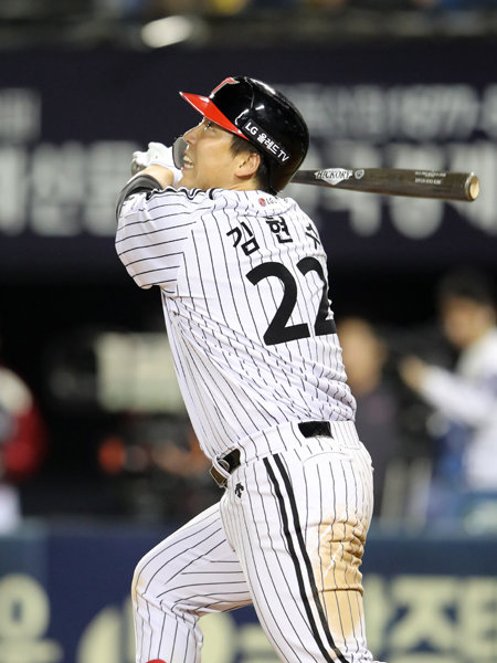 4차전 출발은 나쁘지 않았다. 0-2로 끌려가던 1회 김현수는 2사 주자 3루 상황에서 1타점 중전 적시타를 때려냈다. 하지만 이후 김현수의 방망이는 좀처럼 힘을 내지 못했다. 카를로스 페게로의 동점 솔로 홈런을 시작으로 LG는 2회에만 3점을 몰아쳐 4-2 역전에 성공했지만 1사 만루에서 김현수가 1루수 병살타로 흐름을 끊는 바람에 더 이상 달아나지 못했다.