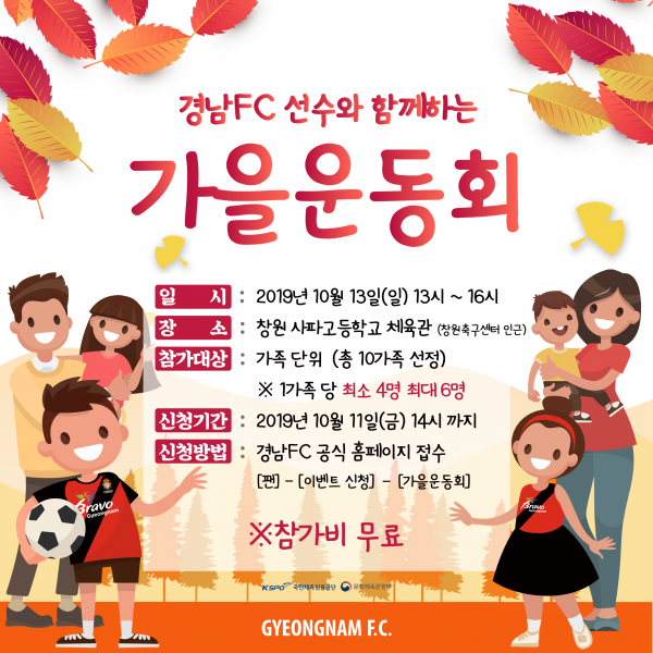 프로축구 K리그1 경남FC(이하 경남)가 오는 13일(일) 선수와 함께하는 ‘경남FC 가을운동회(이하 경남운동회)’를 개최한다. 경남은 지난 8일(화) 구단 공식 SNS를 통해 경남운동회 개최 소식을 알렸다.