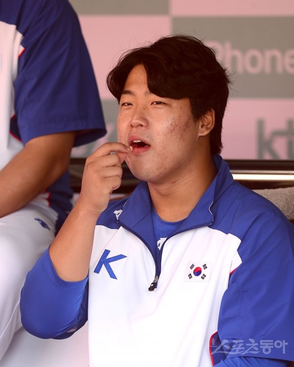 2019 WBSC 프리미어12 출전하는 야구 국가대표팀이 13일 수원 KT위즈파크에서 훈련을 가졌다. 강백호가 간식을 먹고 있다.