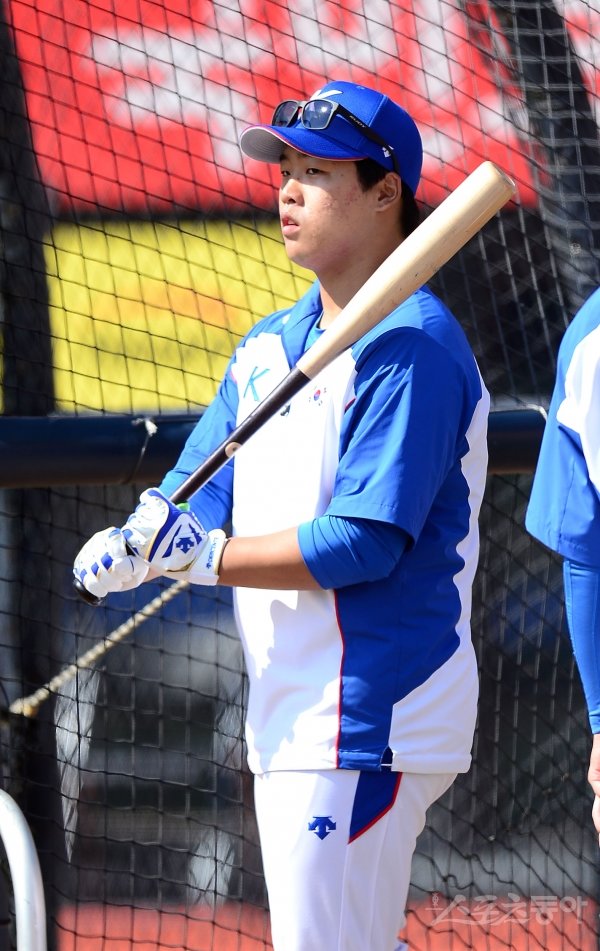 2019 WBSC 프리미어12 출전하는 야구 국가대표팀이 13일 수원 KT위즈파크에서 훈련을 가졌다. 강백호가 타석으로 들어가고 있다.