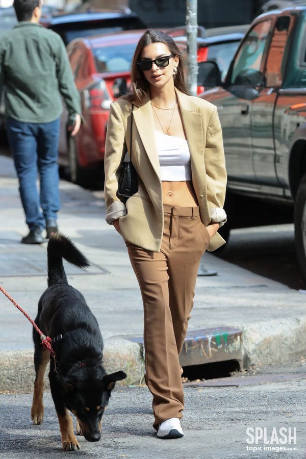13일(현지시간) 에밀리 라타이코프스키는 미국 뉴욕의 한 거리에서 강아지와 산책하고 있는 모습이 포착됐다. 이날 그는 베이지색의 의상과 크롭탑을 안에 매치해 섹시한 복근이 드러나며 건강미를 뽐냈다.
