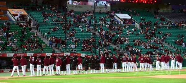 경기에 앞서 키움 선수들이 팬들에게 인사하고 있다.