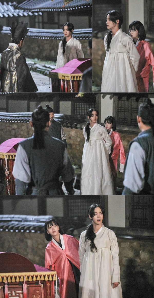 그런 가운데 공개된 사진 속, 녹두와 동주의 일촉즉발 한밤중 대치가 심상치 않다. 무복을 입고 있던 녹두는 어느새 ‘과부’로 다시 돌아온 모습. 박대감(박철민 분)과 맞닥뜨린 녹두와 동주의 표정에 긴장감이 역력하다. 무엇보다 열녀비를 세우겠다는 박대감의 계획을 두 번이나 방해한 녹두이기에 위기감을 고조시킨다. 이어 칼을 든 무사들 앞을 막아서며 동주를 보호하는 녹두가 ‘심쿵’을 자아낸다. 위기 상황 속 깜짝 놀란 표정의 녹두와 동주까지 포착되며 ‘코길이’ 탈취 대작전이 성공적으로 마무리될 수 있을지 귀추가 주목된다.