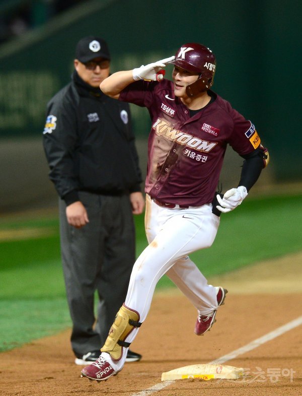 5회초 무사 1루 키움 김하성이 우중월 투런 홈런을 날리고 그라운드를 돌며 환호하고 있다.
