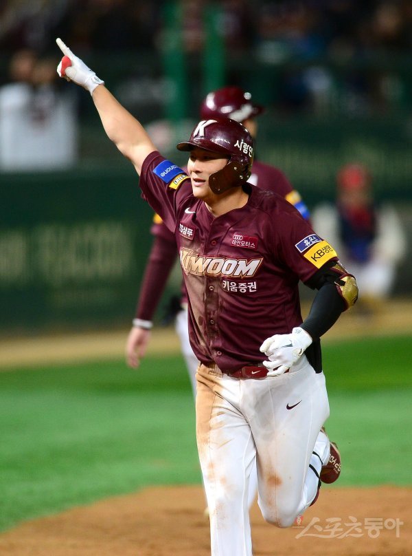 5회초 무사 1루 키움 김하성이 우중월 투런 홈런을 날리고 그라운드를 돌며 환호하고 있다.