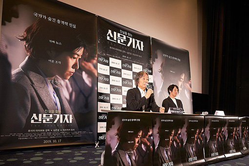 두 사람은 15일 서울 강남구 압구정CGV에서 기자회견을 열고 “보이지 않는 외압 속에 완성한 작품”이라고 ‘신문기자’를 소개했다. 영화는 올해 6월 일본에서 개봉해 적은 상영관 등 한계 속에 14일 현재 46만5000여 명을 모았다. 이들은 “TV나 라디오가 한 번도 영화를 다뤄주지 않았다”며 “홍보수단은 오직 일부 신문과 SNS뿐이었다”고 어려움을 돌이켰다.