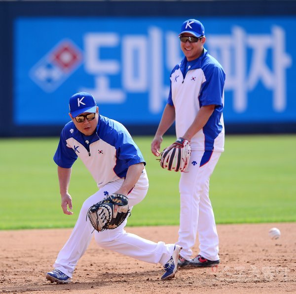 2019 WBSC 프리미어12 출전하는 야구 국가대표팀이 16일 수원 KT위즈파크에서 훈련을 가졌다. 양의지가 3루 수비 훈련을 진행하고 있다.